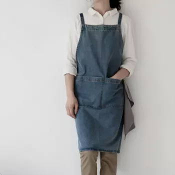 Premium Cotton Denim Apron – Thick Canvas, Anti-Fouling, Adjustable Korean Style
