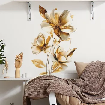 Golden Flowers Decorative Vinyl Wall Stickers – Elegant Home Decor