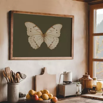 Vintage White Butterfly Print – Dark Moody Insect Wall Art for Green Decor